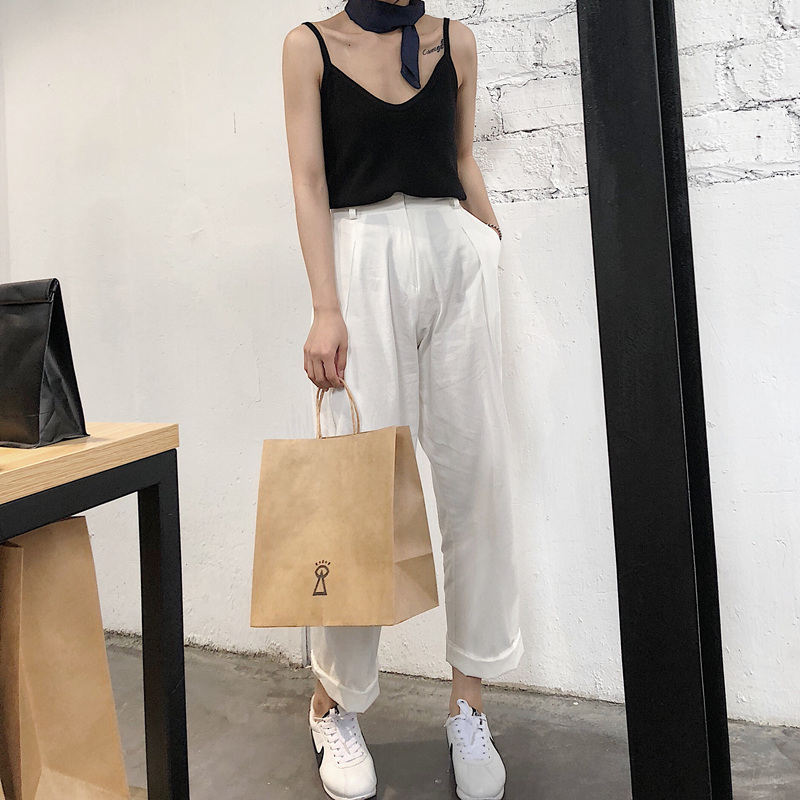 ♥ สายเดี่ยวทับในด้วยกางเกงขากระบอก หาผ้ามาผูกคอ ให้ดูไม่โล่ง ♥