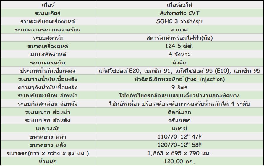 Specifications ข้อมูลรถ Vespa Sprint 125 I-GET ABS