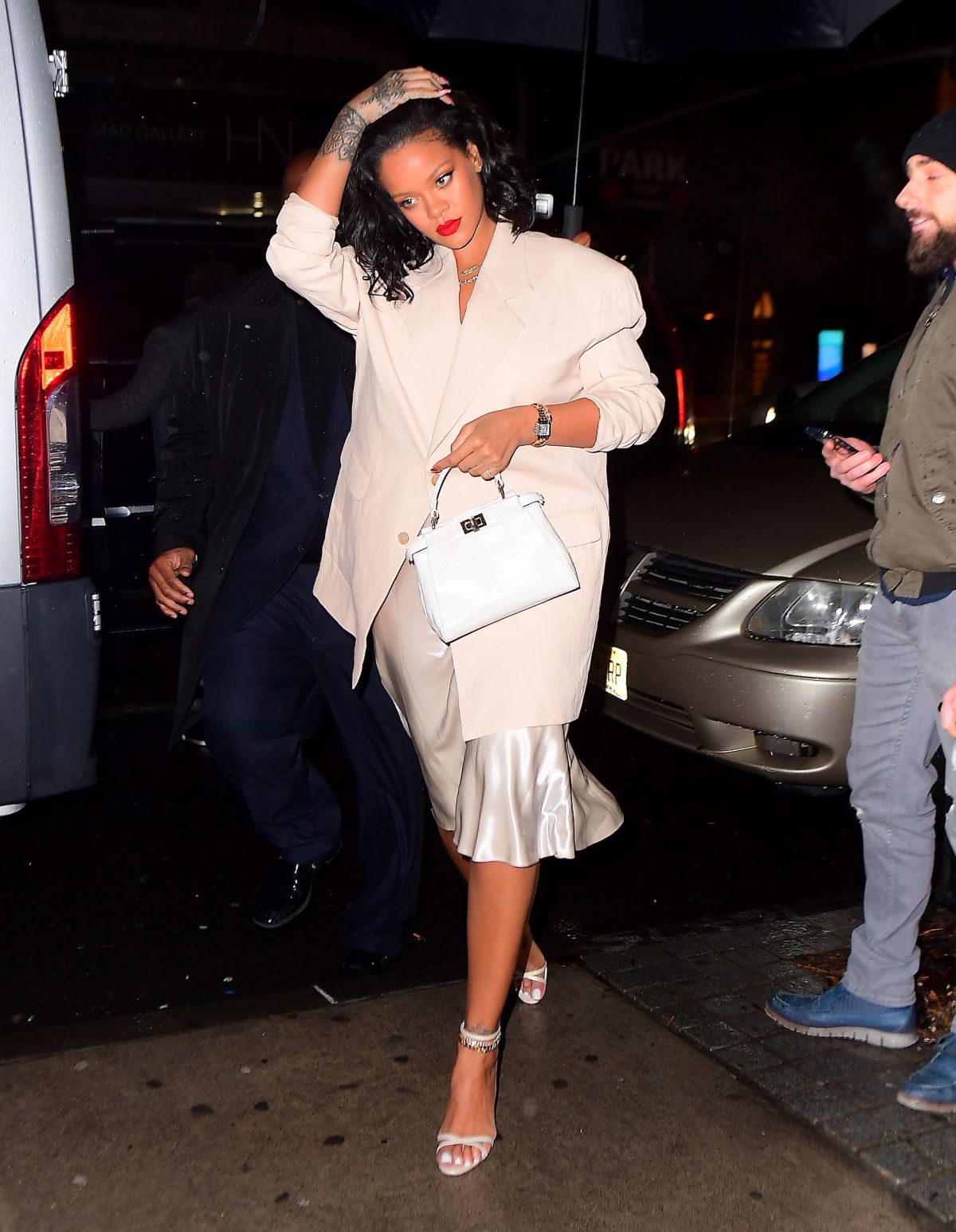 เมื่อคืน เธอก้าวออกมาอย่างสวยสง่า ในลุคที่ได้รับแรงบันดาลใจมาจากสไตล์ยุค 80’s กับแฟชั่นที่สวยสะเด็ด เผ็ด ปากแดง เธอสวมชุดเดรสผ้าไหมสีขาว คลุมทับด้วยเสื้อสูท สีครีม