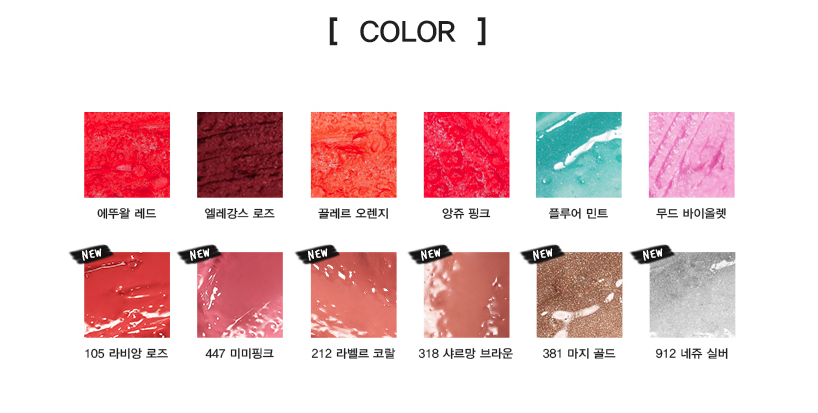 ลิปสติกสีธรรมชาติ ให้ความมันเงา แวววาว แสดงให้เห็นถึงความชุ่มชื่นของริมฝีปาก ให้สีสันที่สดใส และความชุ่มชื่นในเวลาเดียวกัน เนื่อลิปเนียนนุ่ม แพ็คเกจเรียบง่าย สีน้ำเงิน-ขาว ปลอกด้านในสีดำ ในรูปแบบคลาสสิค ราคา 18,000 วอน คิดเป็นเงินไทยประมาณ 525.- บาท
