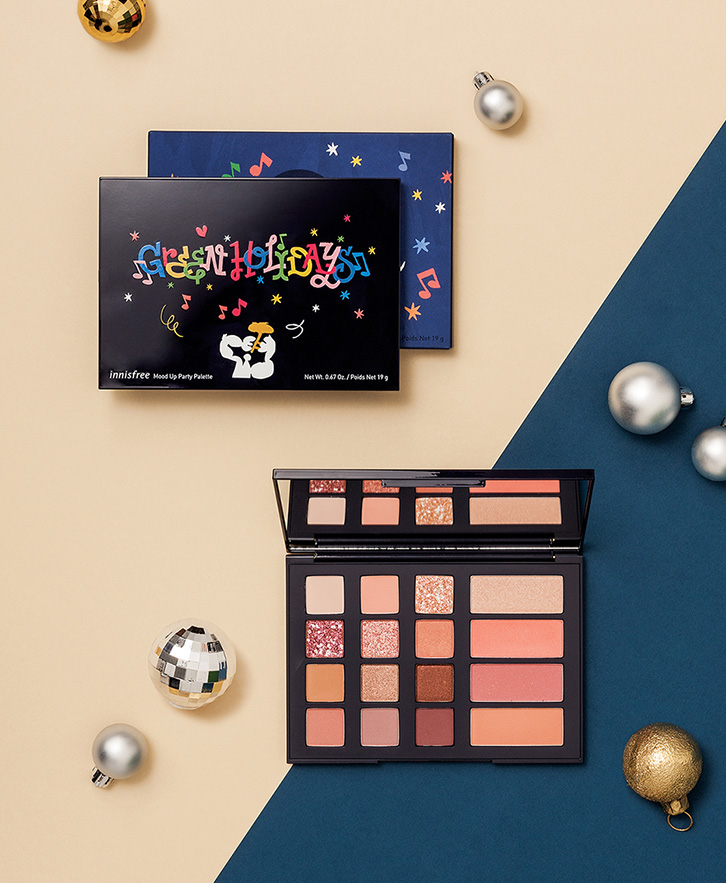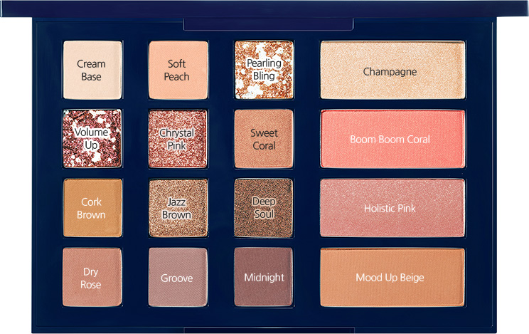 ♥ Mood Up Party Palette : เฟซพาเลทที่ประกอบไปด้วยอายแชโดว์ 12 เฉดสี (เนื้อแมทต์, ชิมเมอร์ และกลิตเตอร์) และบลัชออน 4 เฉดสี (เนื้อแมทต์ และชิมเมอร์) เนื้อเนียนนุ่ม เกลี่ยง่าย ติดทนนาน สร้างสรรค์ได้หลากหลาย