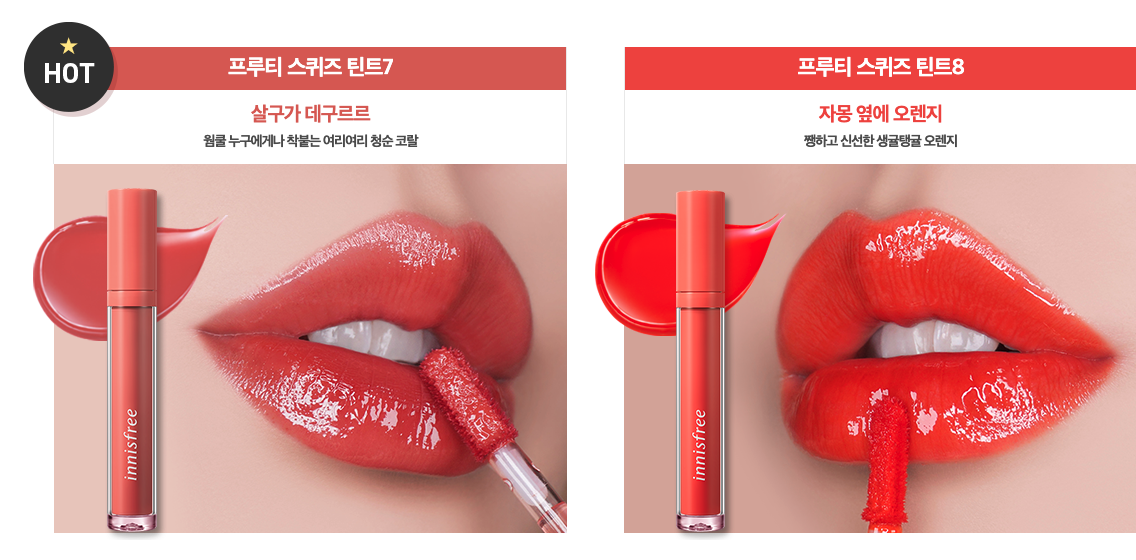 เมื่อไม่นานมานี้ อินนิสฟรี ได้ออกลิปตัวใหม่ ที่มีชื่อว่า “Innisfree Fruity Squeeze Tint” ลิปทินท์ สูตรน้ำ ติดทนนาน ให้ริมฝีปากเงางาม เปล่งประกาย ด้วยเทคโนโลยี Shine Coating System เม็ดสีแน่น ให้สีสันสดใส ราวกับว่าคุณกำลังทานผลไม้ มีสารสกัดจากไข่มุกและองค์ประกอบของเมนทอล ให้ริมฝีปากอวบอิ่ม ตอนทาคุณอาจจะรู้สึกระคายเคืองเล็กน้อย และจะหายไปเอง ไม่เป็นอันตราย พร้อมมอบความชุ่มชื่น ด้วยส่วนผสมจากธรรมชาติ 10 ชนิด อาทิ น้ำมันโจโจ้บา, น้ำมันมะกอก, น้ำมันอัลมอนด์, น้ำมันอีฟนิ่งพริมโรส, น้ำมันเมล็ดแอปริคอท เป็นต้น ที่มอบความชุ่มชื่นยาวนาน เนื้อเหมือนสีน้ำ ไม่เหนียวเหนอะหนะ บางเบา สบายริมฝีปาก ออกมาด้วยกัน 9 เฉดสี คือ เบอร์ 1-3 โทนสีน้ำตาลอิฐ, เบอร์ 4-6 โทนสีชมพูม่วง และเบอร์ 7-9 โทนสีส้ม ราคาแท่งละ 11,000 วอน ประมาณ 287 บาท ยังไม่เข้าไทยจ้า แต่สามารถหาซื้อได้ใน Shopee