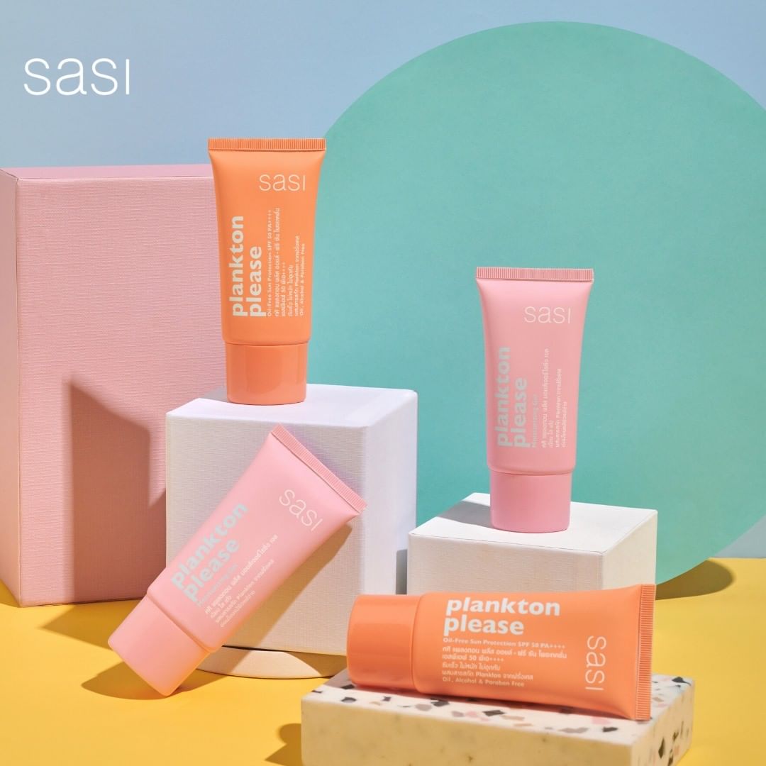 อีกตัวเป็น “Sasi Plankton Please Oil Free Sunscreen Protection SPF50 PA++++” ครีมกันแดด เนื้อบางเบา เกลี่ยง่าย ไม่หนักหน้า ซึมซาบไว ไม่อุดตันผิว อ่อนโยนแม้ผิวแพ้ง่าย มีสารสกัดจากแพลงก์ตอนทะเลน้ำลึก จากฝรั่งเศส ช่วยเติมความชุ่มชื้นแก่ผิว ให้ผิวยืดหยุ่น อิ่มน้ำ กระชับรูขุมขน และวิตามินอี บำรุงผิวให้เนียนนุ่ม มีสารป้องกันสารแดด SPF50 PA++++ ป้องกันผิวจากรังสี UVA/UVB ผลิตภัณฑ์ปราศจากพาราเบน, น้ำมัน และแอลกฮอล์ หลอดสีส้ม ขนาด 20 ml ราคา 149.- บาท