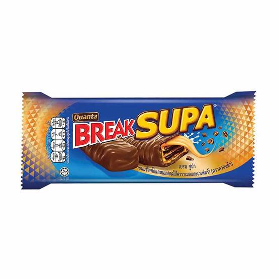 เป็นเวเฟอร์น้องใหม่ที่ว่างจำหน่ายในไทยได้สักพักแล้ว แต่บางคนอาจจะยังไม่ค่อยรู้จัก ควอนต้า เป็นสินค้านำเข้าที่ผลิตจากประเทศสหรัฐอาหรับเอมิเรตส์ ซึ่งก่อนหน้านี้ก็มีเวเฟอร์เคลือบช็อกโกแลตรุ่น Quanta Break มีกระแสที่หลายคนบอกเป็นเสียงเดียวกันว่า คือตัวตายตัวแทนของคิทแคท ด้วยรูปทรงแบบบาร์แท่งที่ทำออกมาเหมือนกัน และรสชาติก็ใกล้เคียงกันมาก แต่วันนี้เราขอแนะนำเวเฟอร์อีกรุ่นที่น่าสนใจ และเป็นที่นิยมไม่แพ้กันในขณะนี้ นั่นก็คือ Quanta Break Supa ขนมช็อกโกแลตนมสอดไส้คาราเมลและเวเฟอร์ เป็นเวเฟอร์ชนิดเคลือบด้วยช็อกโกแลตนมคุณภาพ ขอบอกเลยว่าตัวช็อกโกแลตของยี่ห้อนี้ มีรสชาติใกล้เคียงกับของคิทแคทมาก แต่จะมีความหวานมากกว่านิดหน่อยจนแยกแทบไม่ออก และราดด้วยคาราเมลที่มีความเยิ้ม ยืด และหอมหวาน อร่อยมาก ใครสายหวานต้องถูกใจตัวนี้แน่นอน ในซองบรรจุจำนวน 2 แท่ง แนะนำว่าหากซื้อมาแล้วควรเก็บแช่เย็นไว้ เพราะช็อกโกแลตละลายง่ายมาก อาจจะทำให้รับประทานลำบากและเลอะเทอะได้ เป็นอีกหนึ่งตัวที่แนะนำให้ไปลองกันค่ะ ไม่ผิดหวังแน่นอน