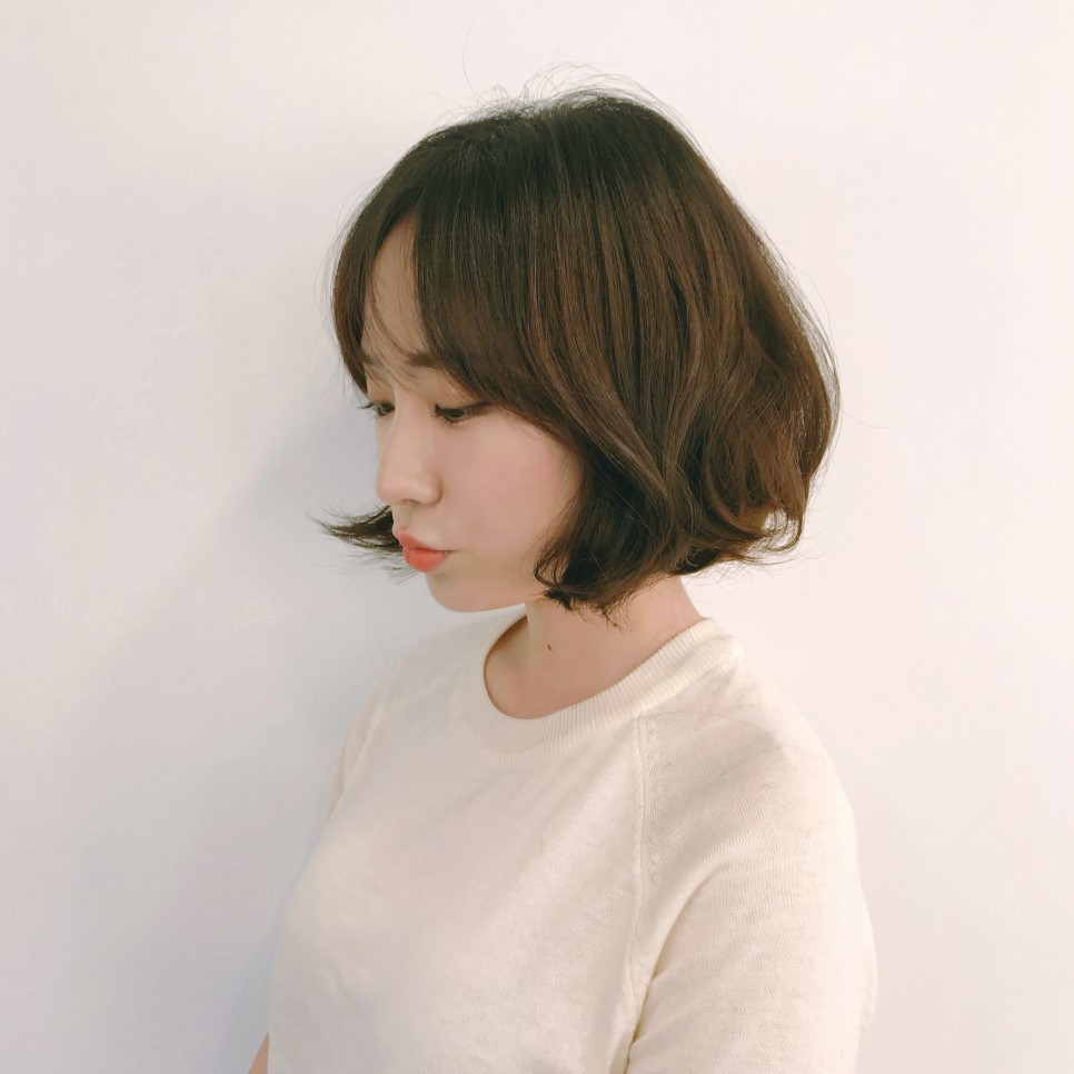 ▼ ผมสั้นปิดกราม แสกข้าง ทัดหู ดัดลอนให้มีวอลลุ่ม ธรรมชาติสุดๆ ▼