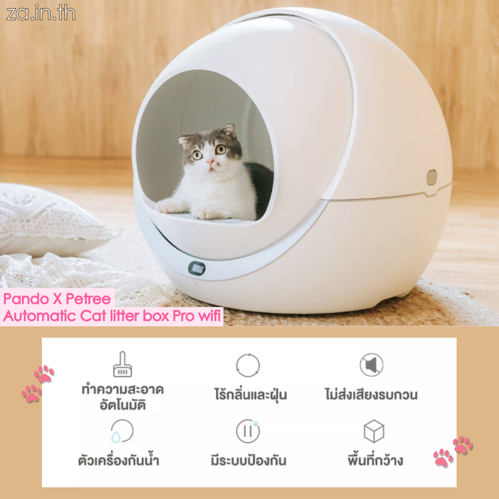 มาเริ่มกันที่ตัวแรกกันเลย เป็นห้องน้ำแมวอัตโนมัติ Petree เครื่องตักอุจจาระแมวออกจากทรายโดยอัตโนมัติ โดยเมื่อเจ้าแมวของเราทำภารกิจเสร็จแล้ว เครื่องนี้จะหมุนให้ทรายที่จับตัวกันเป็นก้อน ไปอยู่ในจุดพร้อมทิ้งขยะโดยที่มนุษย์อย่างเรา ไม่ต้องไปร่อนทองก้อนให้ฝุ่นฟุ้งเลยนะคะ ตัวดีไซน์เครื่องเป็นทรงกลมทันสมัย มาพร้อมเซนเซอร์ตรวจจับความเคลื่อนไหว 4 จุด หากตรวจจับว่าแมวกำลังทำภารกิจอยู่ เครื่องจะไม่ทำงานเพื่อป้องกันไม่ให้เกิดอันตราย การทำงานของเครื่องนี้รุ่น Pro Wifi จะทำงานผ่านระบบ wifi โดยควบคุมการทำงานจากแอปพลิเคชันบนสมาร์ทโฟน สั่งงานเปิด-ปิด, แจ้งเตือนเมื่อถังขยะเต็มและสั่งเก็บก้อนระเบิดหลังจากน้องแมวเสร็จกิจได้ด้วย ทำงานเงียบไม่มีเสียงและกลิ่นรบกวน
